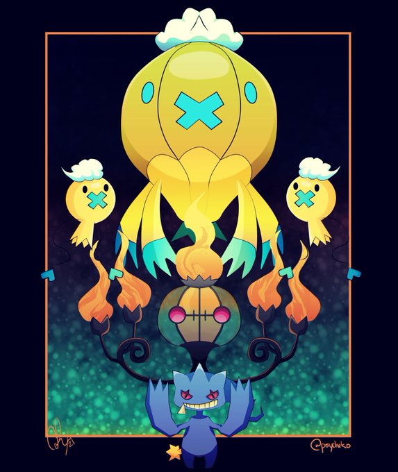 #Pokemon #pokemonart #banette #shinybanette #shinypokemon #chandelure #shinychandelure #drifblim #shinydrifblim #drifloon #shinydrifloon #ghostpokemon #Halloween #halloween2021 #Halloweenart