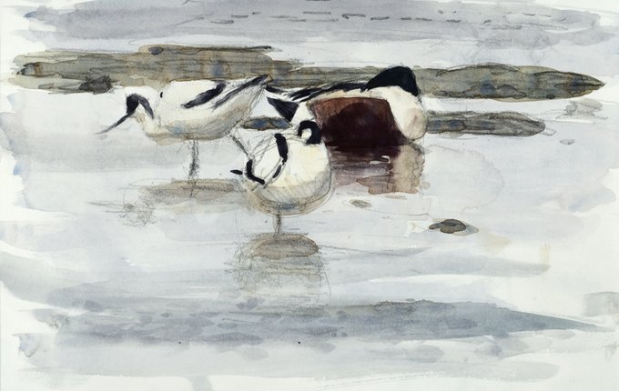 The avocets are back @ryeharbour_NR To celebrate, here is a lovely watercolour by Robert Greenhalf of avocets and a shoveler.