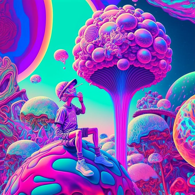 Psychedelic art imagined with AI Midjourney #mushrooms🍄 #psychnaut #blend #psychedelicart #fantasyart #floatingworld #surrealism #hipgnosis #synthography #art #explore #dmtart #aiart #midjourney #art #dmtart #midjourneyart #aiartcommunity #midtrip
