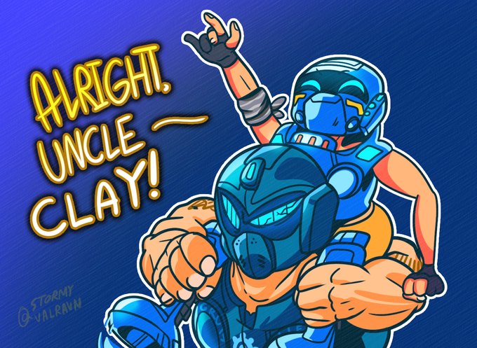 #Gears5 #GearsofWar ~ a couple of my $5 commissions so far! I had a lot of fun with these ideas: the two sides of Baird and quality Lizzie-Uncle time. Bet she'd pretend to use the silverback... #digitalart #FanArtFriday