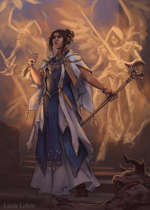 The sketchpoll prompt on Patreon for this week was 'fancy cleric' and I tend to do these sort of 'impractical' designs for more non-adventurer characters so... should I be amused that I still ended up depicting it as some sort of Hold the Line moment? #digitalart #sketch