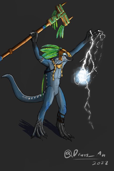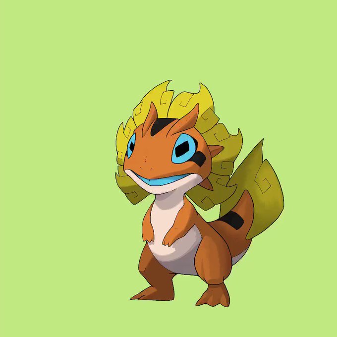 Gave finishing a piece on procreate another chance and I got pretty far but its still a pain. This is my take on charmander. inspirations come from mayan iconography, baby salamanders, and the sun. I added the blue because i think blue tongue skinks are cool.