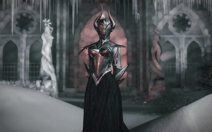 Lady Sarah wearing the Mystique Lilies at the Nord Basilica. #Skyrim #SkyrimMods