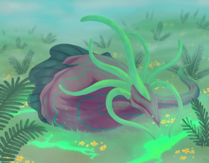 A bunch of critters that i drew for my bestie, to be custom alternate art for some MTG cards they got :3 Featuring angel dino kitty n a couple of slivers 🪱