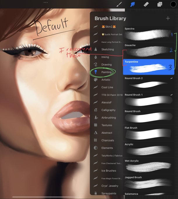 the first pic has my favorite default smudging brushes.