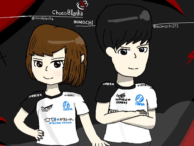 おはようございます。今日はこの絵置いときますね。……シタタタッ ヘ(*¨)ノ (チョコブランカさんと、ももちさんです。2人揃って描きました。)