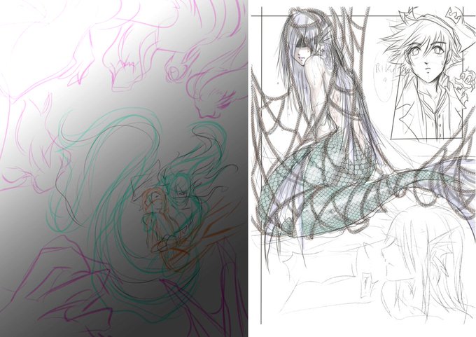 My story about Riku became the mermaid of White Cap Bay that I drew illustrations and dojin, which I can sketch roughly 24 pages and still don't have time to finish it.🤣