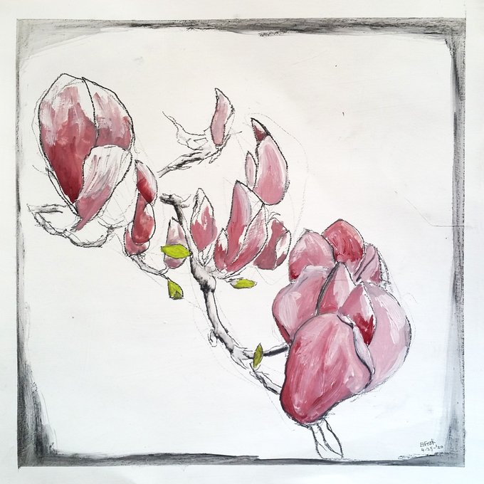 The Botanical Study of the hybrid Magnolia liliiflora and denudata “Saucer Magnolia“ print https://t.co/NEsm7veMMY. The original is oil on gessoed paper #art #painting #oil #print #magnolia #soulangeana #saucer