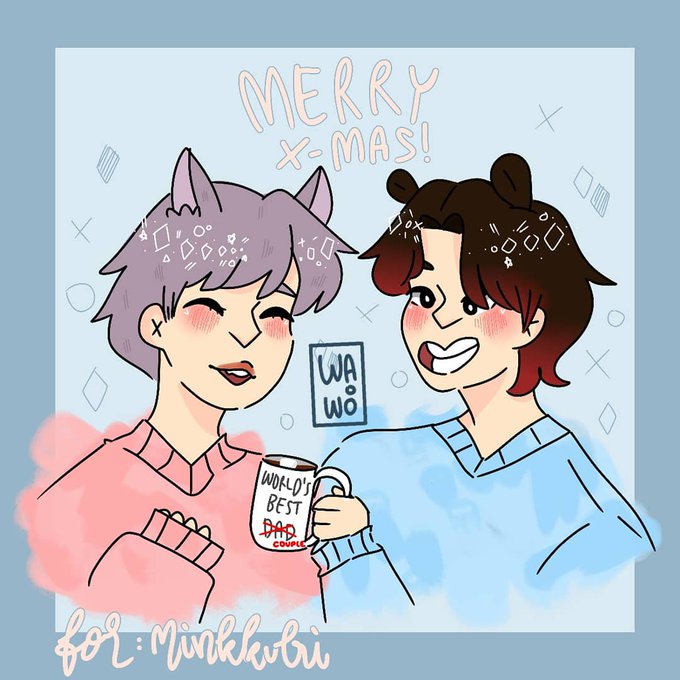 Here's my secret santa piece for @minkkulri on the #SSFelixNavidad2019 christmas collab! It's minsung in sweaters drinking hot chocolate with marshmallow on top!