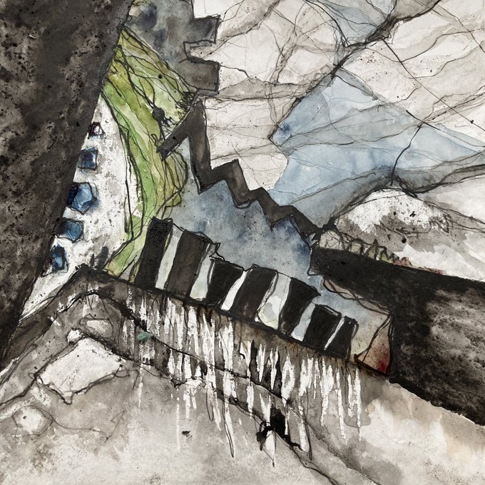 Taking some of the small sketches from my trip to #stkilda the other week to another scale. #watercolour #ink #peat #drawing #painting #sketchbook #cliff #rock #edge #abstract #landscape #artist #uist #northuist.
