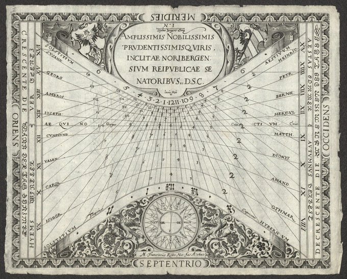 17th century German clock and sundial maker Franz Ritter's beautiful gnomonic projection maps and diagrams from 1610 offer unusual world views that can also be used as sundials. From his 1660 book Speculum Solis - Mirror of the Sun. https://t.co/99fGRBAFlC