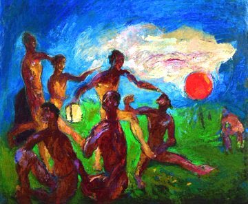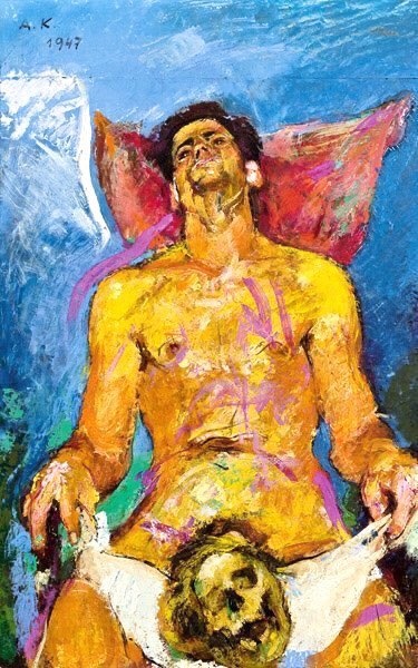 In 1944 he was caught up in bombing & many more of his works destroyed. He died in Nötsch in 1950. Rudolf Hradil (1948), Violinist (1949), Sunseekers (1947) & Our Youth (1947)