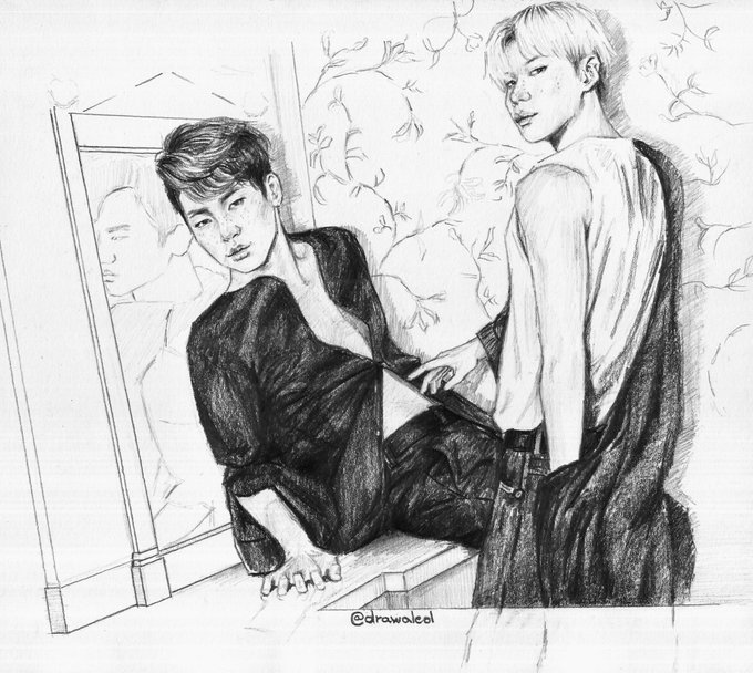 I had this idea planned for quite some time.. I saw a photo of taemin lying on a mattress and used it as a reference for this.. So I wanted to try a "scene" where they are lying while they connect deep glances.... at least I want to try