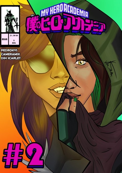 Fiz uma fanart Do meu OC junto com a Hara Chiharu a Personagem da @Malluria_ do RPG de Boku no Hero do @pedrokysarts , Espero que gostem 🧡💜!! ✨✨