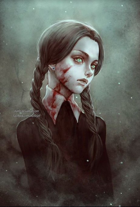 “It is getting dark in this little heart of mine." Wednesday art by @NanFe1789