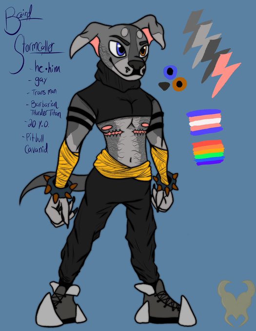 Baird is a Gay Transgender Cavanid (humanoid dog) who thinks with his heart above all else, he has the passion of a thunderstorm!