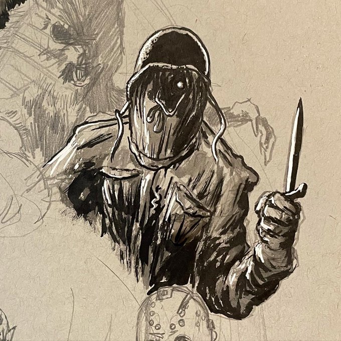 #ink #tonepaper #gellyroll #horrorlife #artoftheday #horrorart #willpottorff #theprowler1981 #tomsavini #strathmore #inktober #inktober2021