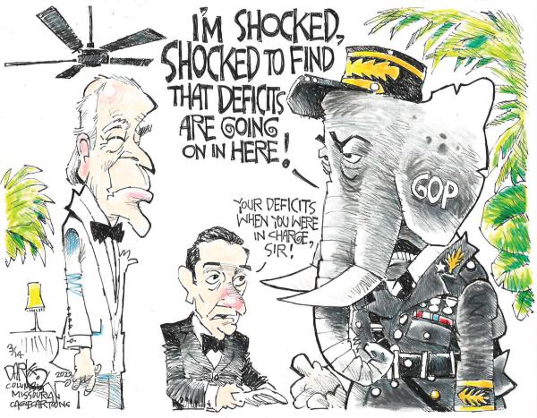El famoso «¡Es un escándalo! ¡He descubierto que aquí se juega!» de 'Casablanca' (1942) en versión capitán Renault republicano por John Darkow @CoMissourian y contrapartida demócrata @Ramireztoons 22/11/17