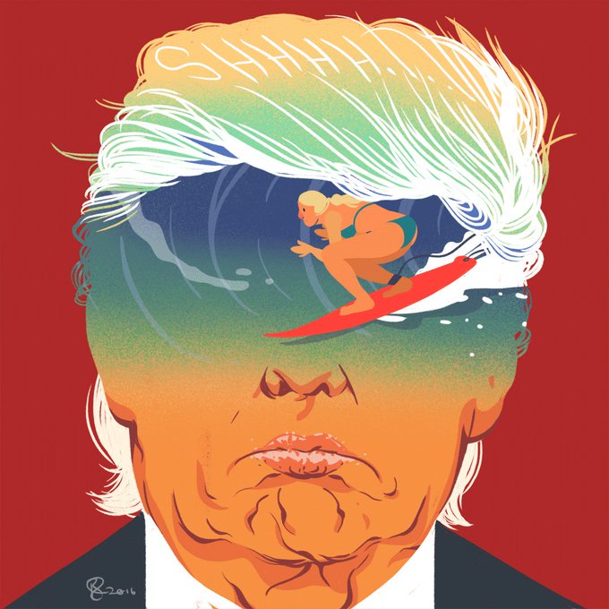 The #AntiTrump wave. #Illustration by Benjamin Leon. #trumpwins #surfing