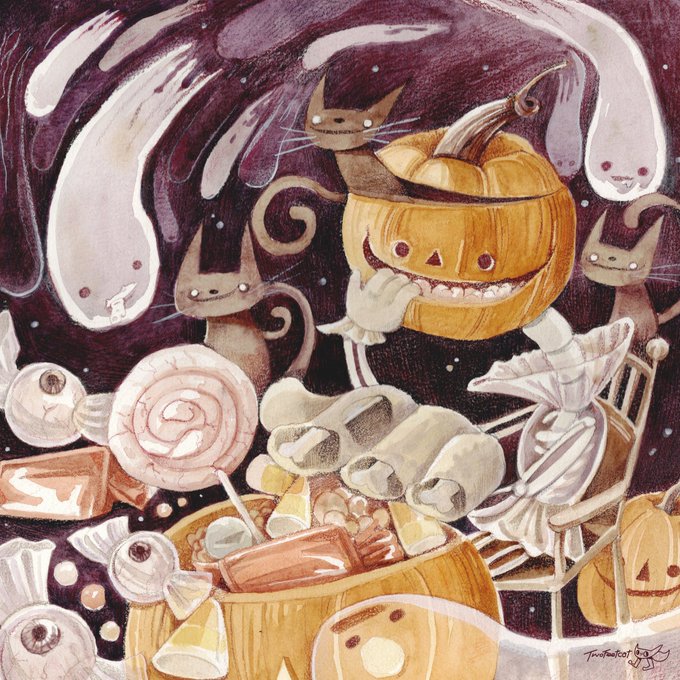 Hi! I’m twofeetcat, I draw a bunch of cutie-spooky things on twitter👻✨