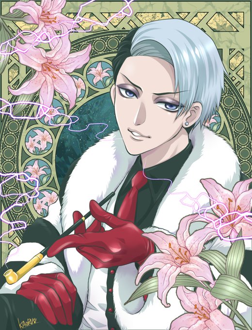 ミュシャ企画、バルガス先生で初参加です!オマージュではないですが薔薇の精の背景を参考にしました。ええ様子がおかしいです。