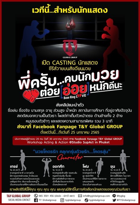 La novela #คบนักมวยอ่อยหนักดีนะ (Saliendo y coqueteando con un boxeador) será adaptada a una serie bajo el nombre de #BoxeRingLove. Esta ya comenzó su proceso de casting bajo la producción de #TYGlobalgroup