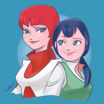 アナ雪っぽい「カララとハルル」も塗ったった。新刊 #umegrafixIDEON にはこれを含めラクガキまとめページも作りました(24ページに増えたヤバイw) 11/2はトミケット!