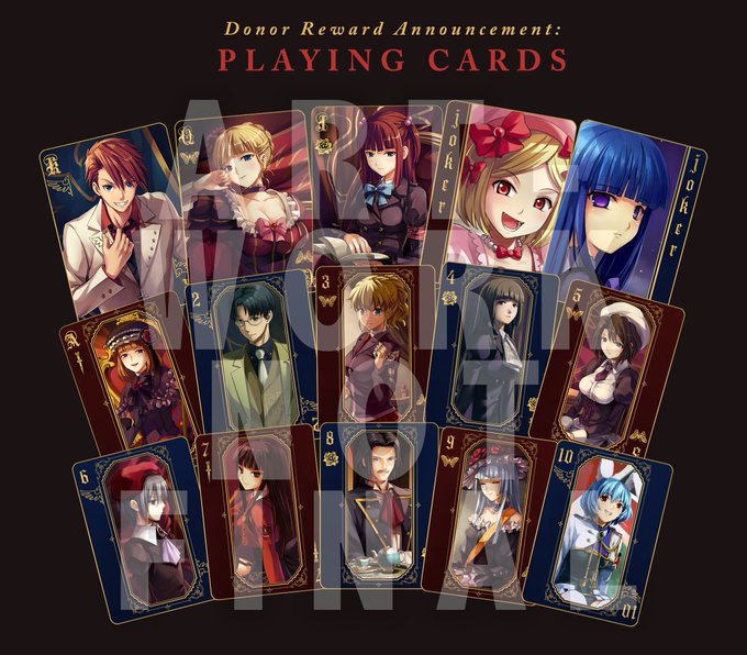 Are you excited to see all the brand new official merchandise you'll be able to score from the #UminekoGold Kickstarter? Here's a sneak peek at one of our exclusive items: a complete, 54-piece deck of Umineko playing cards!!! *ARTWORK SUBJECT TO CHANGE.