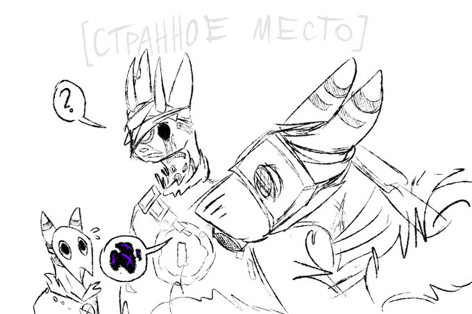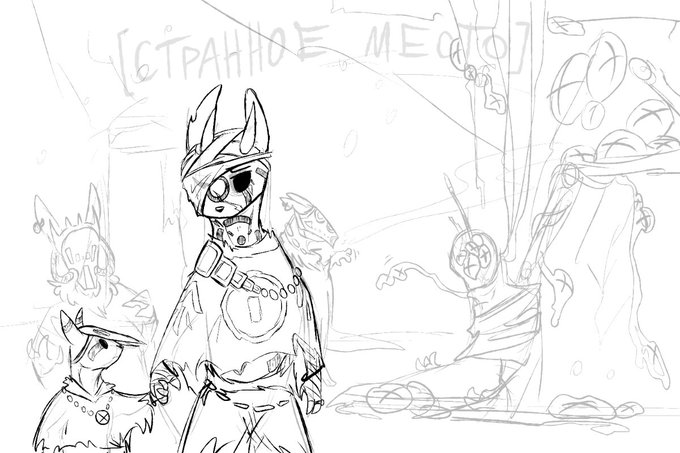 Series of doodles, where i imagine the distant future of the Rain World, when scavengers and slugcats become allies and developed some type of society.