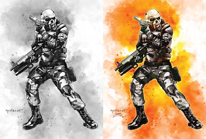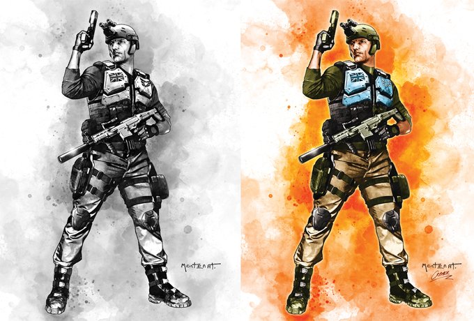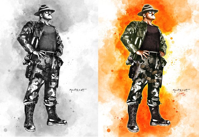 A while back I did some colour work on the graytoned work of Michael Montenat for Action Force packaging. Here's a comparison of the orignal art vs the final colourised art. #Valaverse #ActionForce @_SgtSlaughter #packagingdesign