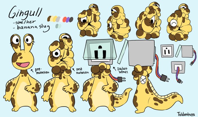 Recently finished up all the character references for an original story called Slug City, a world inhabited by anthropomorphic soft invertebrates,and what better time to post them than for #InverteFest ! (1/4)