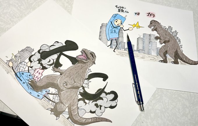 リクエスト貰ってた「ちょうせい豆乳くんvsゴジラ」
