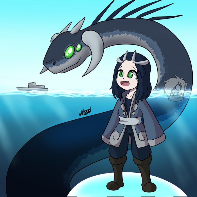 Drawings of Tahala my monster watersnake OC!