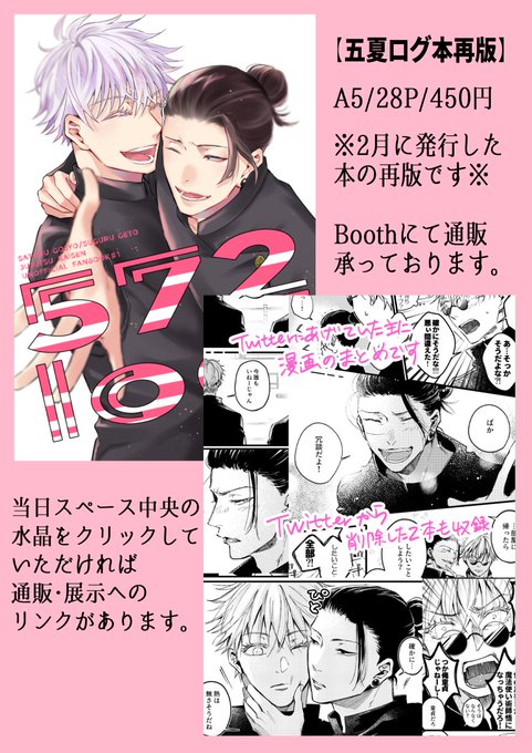 ログ本の再版と当日に漫画の展示(五夏/ポイピク1日限定)を行いますので遊びに来ていただけたら嬉しいです☺️