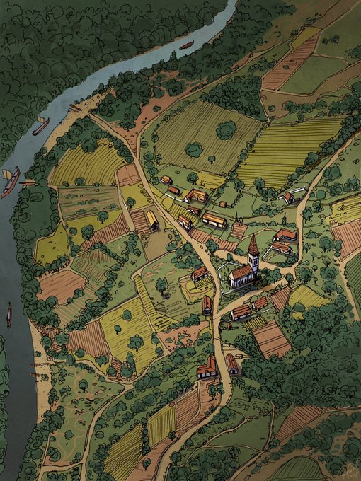 ‘Saxon Village’.I did this illustration in early conception of ACValhalla to help the world team to build an ingame ‘village benchmark’. Problem solving and world design, urbanism and nature.Starting from the blank page. #AssassinCreedValhalla #conceptart #worlddesign #gameart