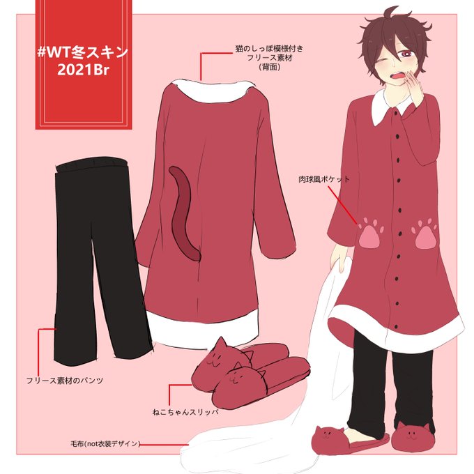 #WT冬スキン2021Br コンセプト:ルームウェア×動物🐱 ※手に持っている毛布はスキンデザインに含まれていないです