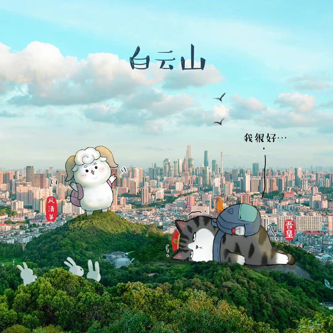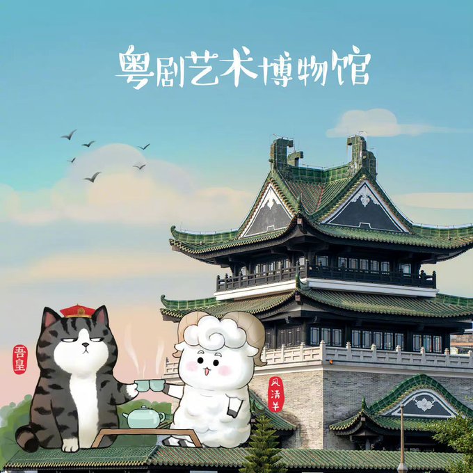 Wuhuang and his Baicha are in #Guangzhou, hanging out with Qingfeng Ram, loving this art. 😻