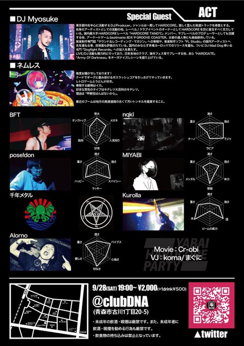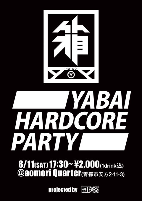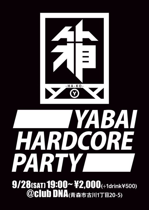 今週土曜 青森市club DNAにて「箱〜YABAI HARDCORE PARTY〜」 #YABAI85 というイベントがあるのですが、大阪から