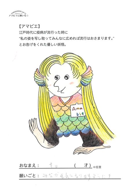 #aoy_アマビエに願いを #YOKOHAMAN #ヨコハマン #ぬりえ #ワークショップ #アマビエ
