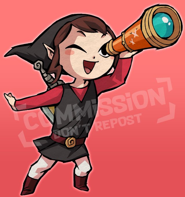Commission chibi dans le style de Zelda Wind Waker pour @TheFloFic et un sketch full pour @_Anguelius_ dans le style... Pas de style précis, c'était yolo.