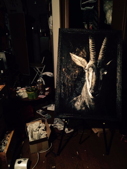 【告知】オオクロレイヨウ描けたで!部屋めちゃくちゃや!展示は明日から!! ZEN展銀座選抜展 3月29日火~4月3日(日) 11時〜18時※最終日〜16時半 銀座大黒屋ギャラリー 詳細:https://t.co/l4sJuge0nT