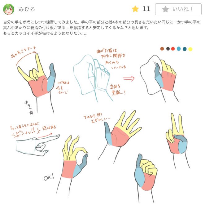 『手や指の描き方講座』のイラレポをピックアップしました💖