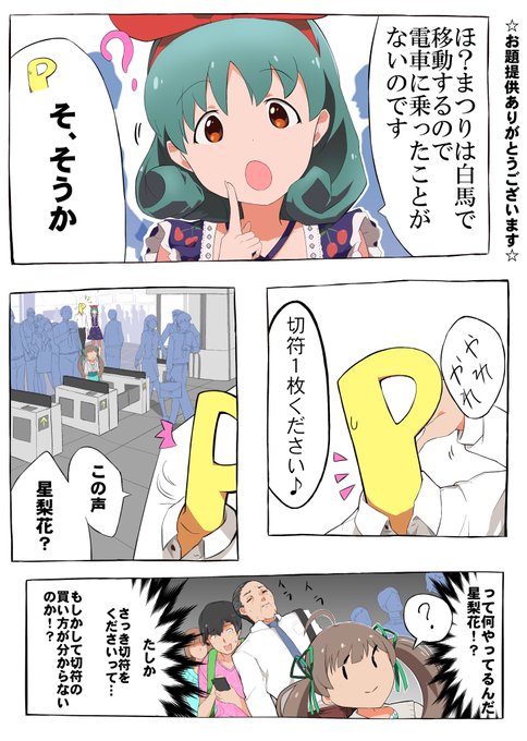 お題より > 駅でPと偶然自動改札に話しかけている星梨花を見つけて切符の買い方を教えてあげるまつり姫