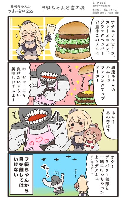 思いついたら出す4コマ 「赤城ちゃんのつまみ食い 255」 〜 ヲ級ちゃんと空の旅 〜 #艦これ