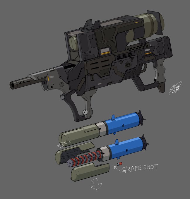 キャニスター弾搭載型50mm重機関砲。 こないだ描いたロボットに持たせる奴です。